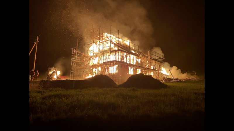 Beim Eintreffen der Feuerwehren sei das Gebäude bereits vollständig in Brand gestanden. Das Feuer habe eingedämmt werden können, so dass es nicht auf die Baustelle in der Nähe des Bauernhauses übergegriffen habe.