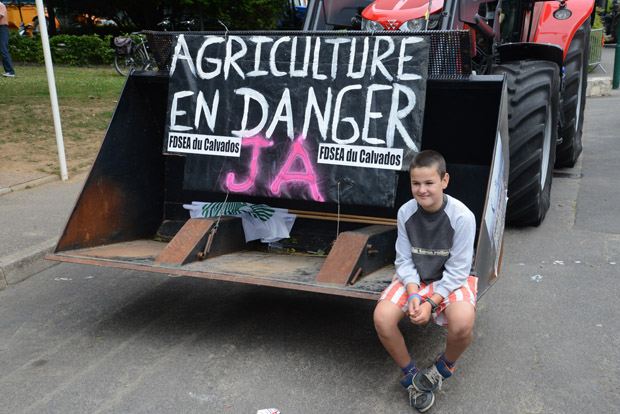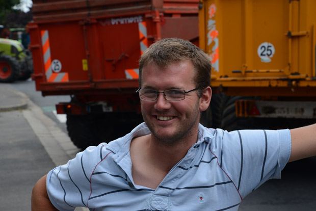 Auch Hugues Lalonde aus Saon ist mit seinem Traktor nach Bayeux gekommen. Der 27-Jährige bewirtschaftet mit seinem Bruder, seinen Eltern und einem Angestellten einen Betrieb mit 400 ha Nutzfläche. Sie produzieren 1,3 Millionen kg Milch pro Jahr, halten dazu 80 Mutterkühe und betreiben auf der restlichen Fläche Ackerbau. Trotz dieser grossen Strukturen lohnt sich die Landwirtschaft für Lalande im Moment überhaupt nicht. «Um Geld verdienen zu können, müssten wir einen Milchpreis von 40 Cent pro kg haben», meint er. Momentan erhalte er aber nur noch 29 Cent.