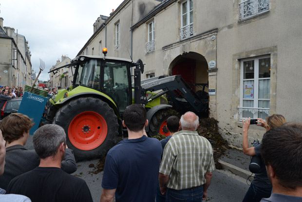Die meist jungen Bauern haben der Bezirks-Präfektin Laurence Béguin ein Ultimatum gestellt. Wenn sie sich nicht bis 11 Uhr mit ihnen trifft, würden sie alle 15 Minuten 5 Kipper mit Mist vor die Präfektur werfen. Doch so weit kommt es nicht. Die Präfektin diskutiert mit einer Delegation. Schliesslich gibt Wortführer Sébastian Debieux bekannt, dass sich die Präfektin bei höherer Stelle für sie starkmachen werde. Deshalb würde nun an dieser Stelle kein Mist abgeladen.