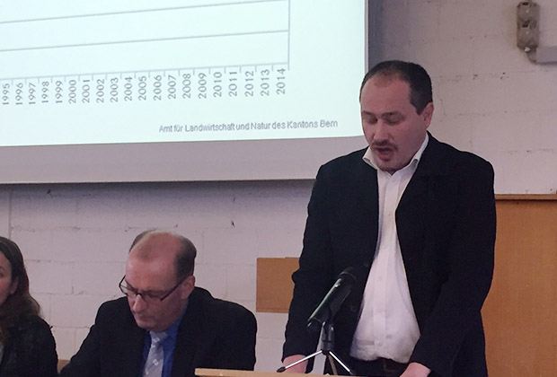 Gleich drei junge Meisterlandwirte stellten am Inforama Rütti ihre Betriebe vor. Dazu gehörten der Mutterkuhhalter und Energiewirt Nik Peterhans aus Niederrohrdorf AG, der Ziegenmilchproduzent Sébastien Berset aus Villargiroud FR, sowie die Schweinezüchterin Fabienne Wyder aus Büren an der Aare BE. «Ich musste den Betrieb mit hohen Schulden übernehmen. Ferien sind für uns fast nicht möglich», betonte die 31-jährige Wyder. Sie wünsche sich für die Zukunft faire Preise. «Das heisst für mich, dass wir zu kostendeckenden Preisen produzieren können», erklärte sie.