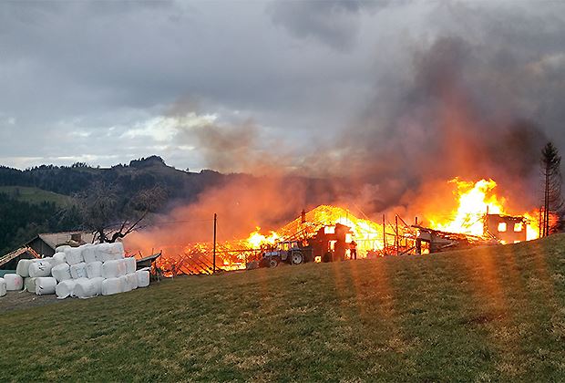 Innert kurzer Zeit standen – bis auf einen kleinen Stall – sämtliche Gebäude des Weilers Unterer Wolfsberg in Brand. Um das Feuer zu bekämpfen, musste die Feuerwehr über mehrere Kilometer eine Wasserleitungen legen. Trotz des raschen Eingreifens konnte wegen des Windes das Abbrennen des Weilers nicht verhindert werden. Gemäss NZZ waren vom Brand der Bauernhof, ein Stall und drei Agrargebäude betroffen.