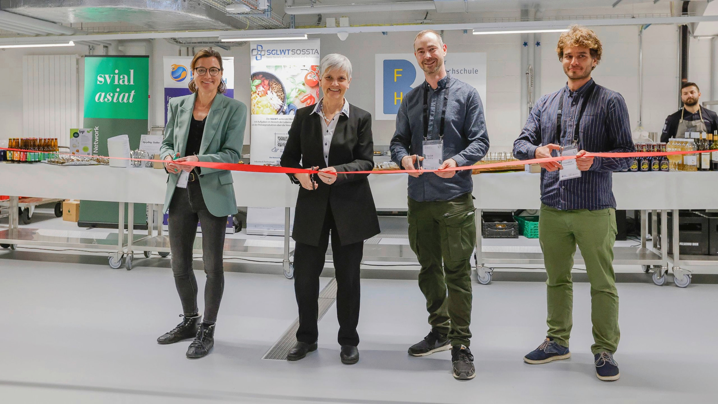 Die erweiterte Technologiehalle («Pilot Plant») wurde am Donnerstag, 6. Februar, im Rahmen des Future Food Symposiums eröffnet. An der Eröffnung in Zollikofen BE nahmen teil: Ute Seeling, Direktorin der Hochschule für Agrar-, Forst- und Lebensmittelwissenschaften (Half) , Ursula Kretzschmar, Fachbereichsleiterin Food Science & Management Hafl, Sebastian Friess, Leiter der Standortförderung Kanton Bern sowie Karola Krell, Vertreterin der Föderation der Schweizerischen Nahrungsmittel-Industrien Fial.