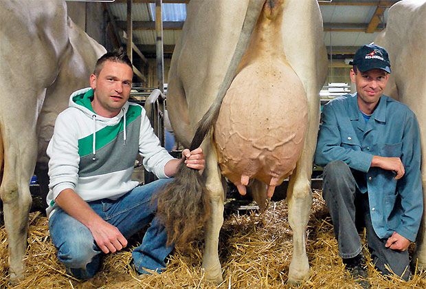 Betriebsdurchschnitt: 9'466 kg Milch, 4,46 % Fett, 3,6 % Eiweiss