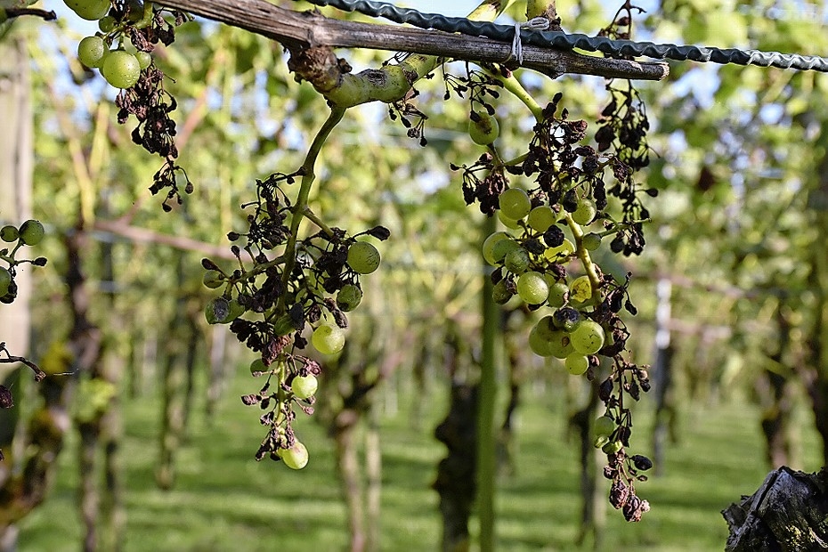 Gemeint ist, dass die Reben ungewöhnlich viele Blüten oder kleine Beeren vom Stiel abstossen. Später traten der Echte und der Falsche Mehltau auf, zwei gefürchtete Pilzkrankheiten. Sogar Traubensorten, die als robust und resistent gelten, waren davon betroffen. Auf einigen Parzellen resultierte ein Totalausfall.