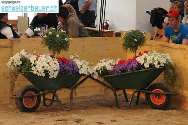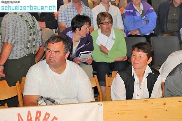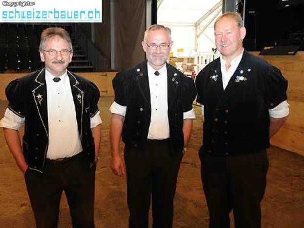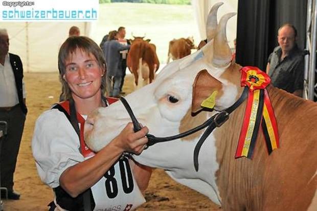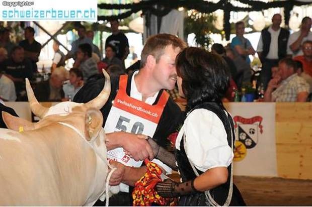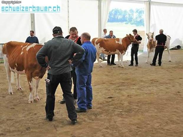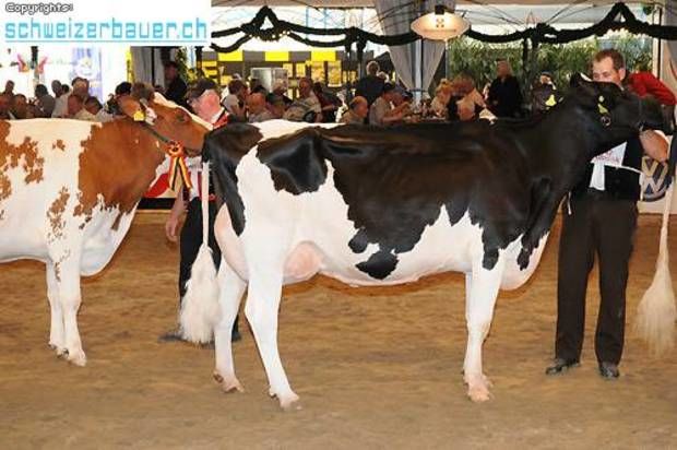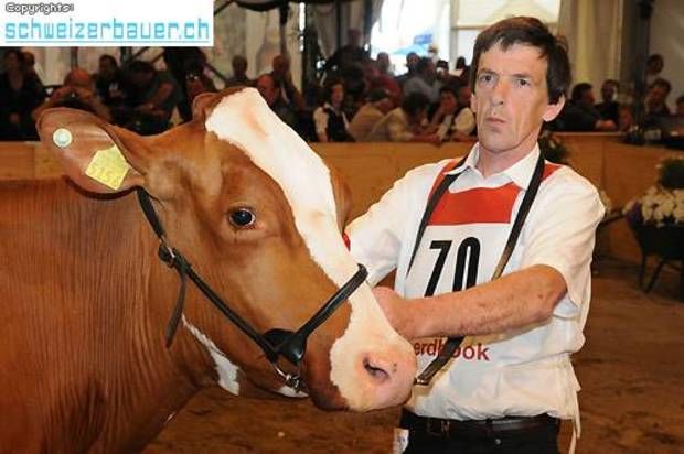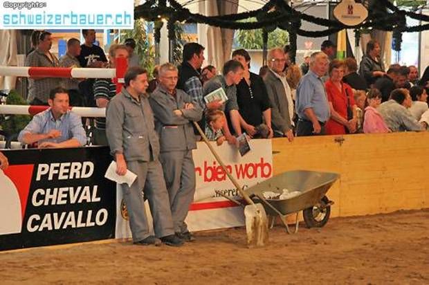 Die ersten Tiere und ihre Besitzer kommen in die Arena. Freuen sich auf die Eliteschau: Karl Wittwer (Geschäftsführer Bern. Fleckviehzuchtverband), Hans Siegenthaler (Präsident Bern. Fleckviehzuchtverband), Urs Buri (Präsident Schaukommission) Noch ist die Schauarena ohne Tiere... Marianne Feuz (Ehrendame) und Karl Wittwer (Geschäfsführer Bern. Fleckviehzuchtverband). Stefan Schumacher richtet die SF- und Si-Kategorien an der Eliteschau. Die Ringreiniger verrichten ebenfalls einen sehr wichtigen Job. Gerhard Moser und Brigitte Berger verfolgen gespannt die Vorführung der Tiere. Auch Red Holstein und Holstein-Kühe konnten die Anwesenden begeistern. Die Viehzuchtprominenz verfolgt gespannt die Vorgänge im Ring. Die Eliteschau zieht die Zuschauer in ihren Bann. Ehrendame Marianne Feuz gratuliert allen Kategoriensiegern. Adelheid Graf aus Bleiken b. Oberdiessbach freut sich zusammen mit Annouko Vanilla auf ihren Auftritt im Ring. Daniel Schwarz holte mit Rustler Gina einen Kategoriensieg. Gina nahm letzten Oktober auch an der Red-Holstein-Europameisterschaft in Cremona teil. Die aufgeführten Tiere schienen den Besuchern zu gefallen. Der Mutter gefällts, die Tochter ist doch eher müde. Die Schauarena ist sehr gut besetzt. Rund 800 Personen wohnen der Eliteschau bei. Jean Siegenthaler richtet die RH- und HO-Kategorien. Im wahrsten Sinne des Wortes Zaungäste...