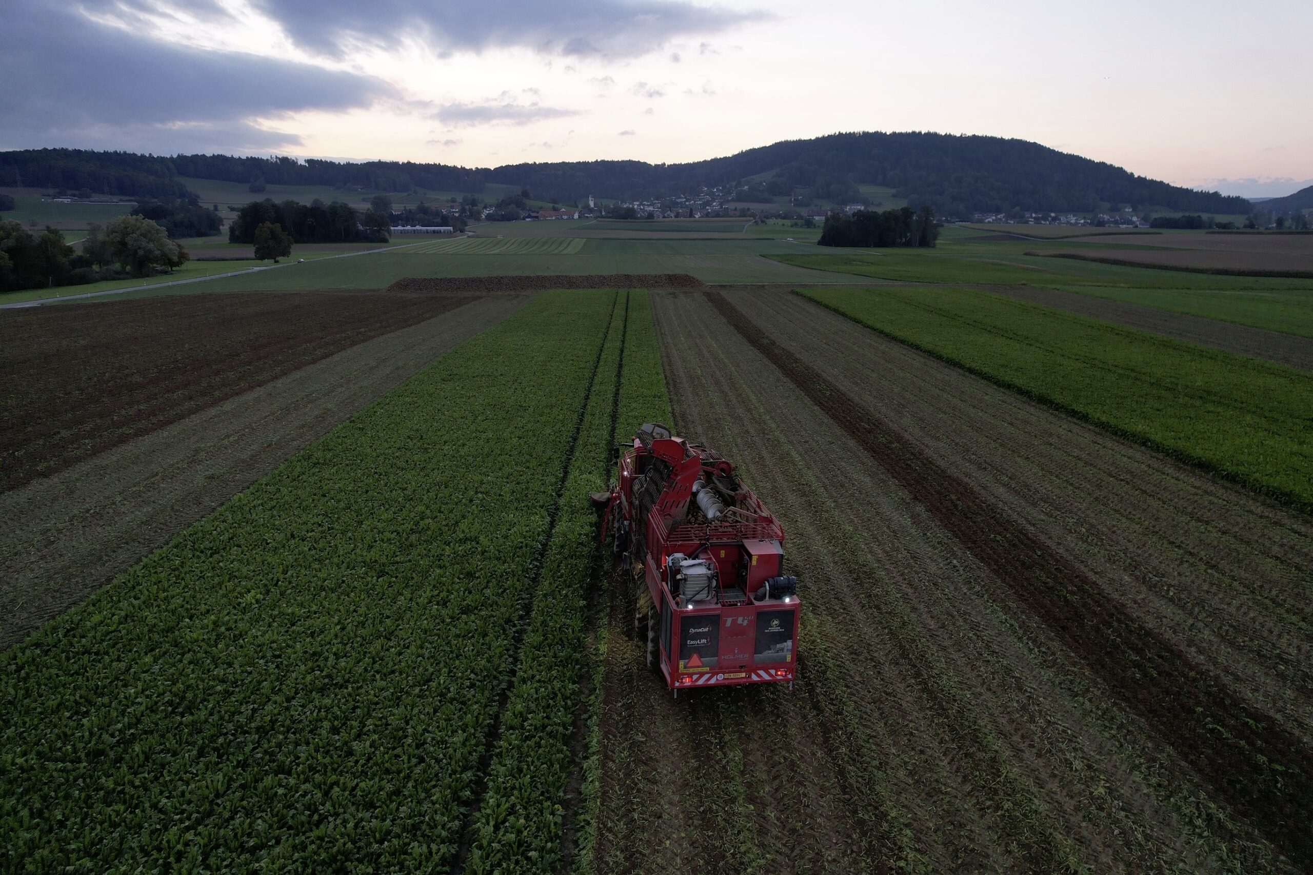 Das Anbaugebiet von Zuckerrüben erstreckt sich vom Genfersee über den Jura, das Mittelland und die Zentralschweiz bis ins Rheintal. Bis zu 90 000 Pflanzen wachsen auf einer Hektare, woraus 10 000 bis 15 000 kg Zucker gewonnen werden. Oder etwas einfacher aufgezeigt: Für ein Kilogramm Kristallzucker braucht es acht bis neun Rüben.