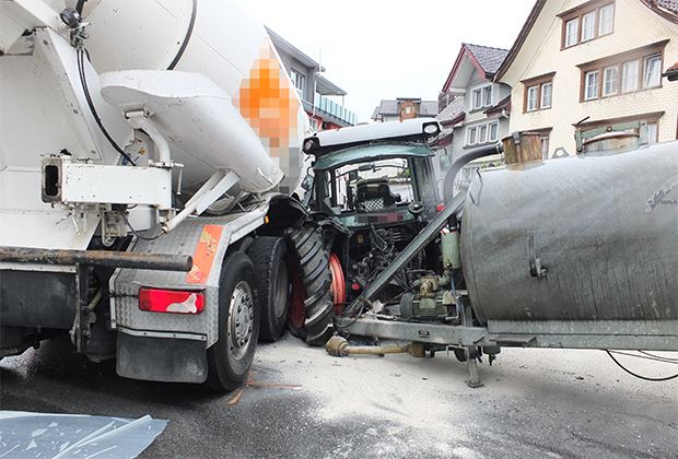 Am Mittwochvormittag kann es in Altstätten SG zu einer heftigen Kollision zwischen einem Traktor und einem Betonmischer. Der Traktorfahrer wurde leicht verletzt. Der Sachschaden ist hoch.