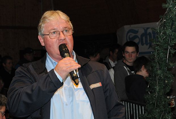 Bald marschieren hier die Kühe ein. Ex-Milchprinzessin Andrea Berger serviert bei den VIPs. Kuh hat Durst vor der grossen Schau! Vor der Ausstellung herrscht in den Tierzelten ein Gedränge. Styling 2: Jedes Häärchen wird genau gerichtet. Styling 1: Konzentration pur beim Stylen der Top-Line. Trotz Ausstellungs-Stress reicht die Zeit für ein gemütliches Schwätzchen. Hans Siegenthaler, Fleckviehzüchter, Margrit Zwingli, Organisatorin und Ruedi Haudenschild, Chefredaktor beim Schweizer Bauer. Siegenthaler, ehemaliger Präsident des Bernischen Fleckviehzuchtverbandes, ist extra aus dem Emmental gekommen, weil er so viel Gutes über die Betriebsmeisterschaft gehört hat. Godi Jud und Urs Albert scheinen gut gelaunt zu sein. Organisator Emil Zwingli bespricht mit Speaker Martin Haab die letzten Details vor der Ausstellung. Die Ehrenpreise warten auf die Sieger. Der Himmel in der Markthalle Wattwil hängt voller Technik. Nationalrat Toni Brunner und Braunvieh-Königin Barbara Reidt übergeben die Ehrenpreise, Martin Haab moderiert. Schweizer Bauer-Redaktor Samuel Krähenbühl, Richter Angelo Pozzatti, Ringman Daniel Gasser. Richter Angelo Pozzatti konzentriert an der Arbeit. Original-Braunvieh-Züchter Felix Honegger scheint ein unterhaltsames Telefonat zu führen. Wie die Wiener Sängerknaben stehen sie da. Aber ihre Aufgabe ist nicht musikalischer, sondern eher fäkaler Natur. Kuh scheints zu gefallen... Schau mir in die Augen, Kleines, scheint Toni Brunner hier zu Ehrendame und Braunviehkönigin Barbara Reidt zu sagen. Markus Zemp, Präsident von Braunvieh Schweiz, hält seine Neujahrsansprache. Betriebsmeisterschaft 2013 - Blick in die volle Markthalle Wattwil. Die Bombeneuter der Kategorie 7. Ehrung der Braunvieh-Schausiegerinnen 2013. Pianist Silvan Zingg zeigte eine in jeder Beziehung schräg-überraschende Schau. Ringman Daniel Gasser und Richter Angelo Pozzatti beklatschen den Show-Block. Sponsor der Kategorie 10 ist...der Schweizer Bauer! Das Traumeuter von Schöneuter-Champion Nesta Sun. Richter Angelo Pozzatti gratuliert Simon Zeller, der den Reserve-Grand Champion Längachers BS Tau Tamy, WTS-Genetics, Menznau, vorführte. Das Traumeuter von Grand Champion Pius Schulers Glenn Glena. Das Line-Up vor den Championwahlen.