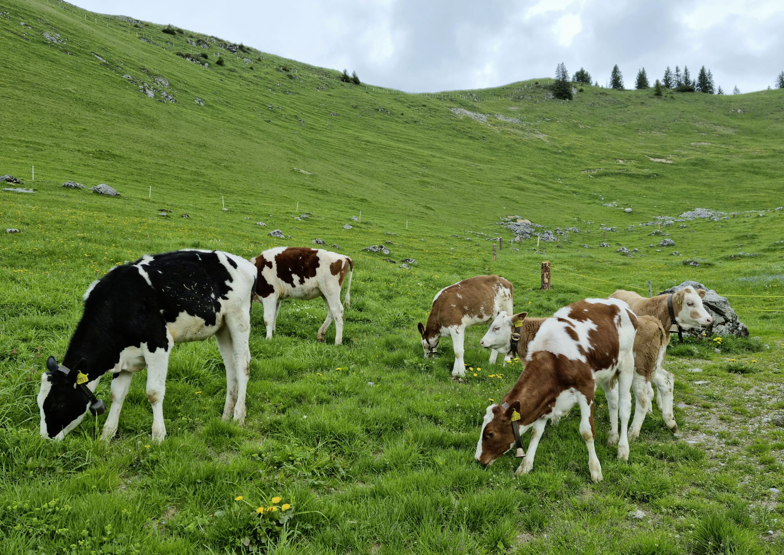 Nun bin ich schon eine Woche auf der Alp. Die Kühe haben sich rasch in ihrem Sommerquartier eingelebt. Ein buntes Gemisch an Holstein-, Redholstein-, Brown-Suisse-, Schweizer-Fleckvieh- und Simmentaler-Kühen.