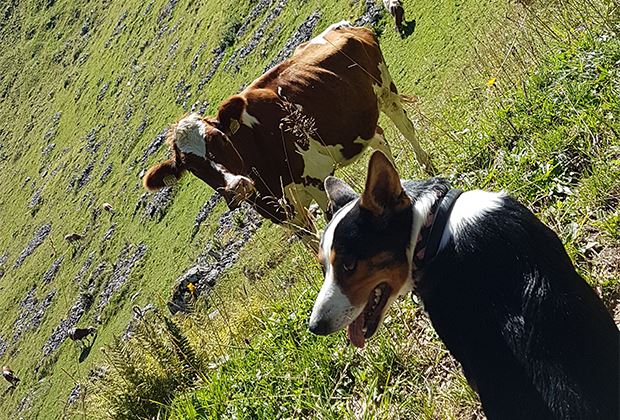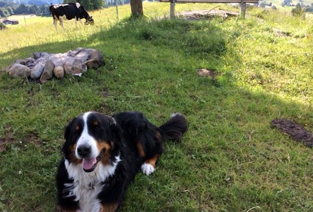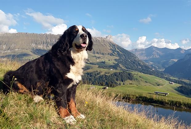 Nara geniesst die wunderschöne Aussicht auf der Aeschiallmend BE.