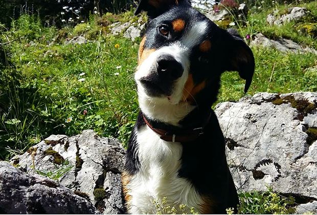 Reinrassige Appenzellerhündin Neila ist Petra Häfelis Hofdiva. Besonderes Markenzeichen von Neila sind ihre 3 Sommersprossen auf der Nase.