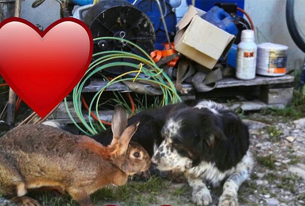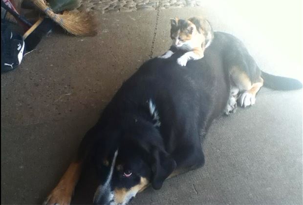 Hund Abraham vom Herrengraben, genannt "Hämu" mit Nachbarskatze Max. Die zwei Alten mögen sich sehr.