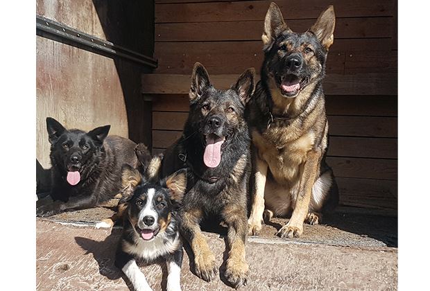 Die Hunde Jessy, Lynn, Nando und Ina.