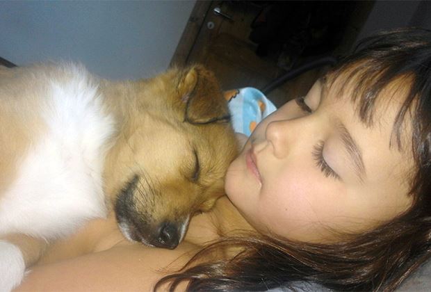 Rana (7 Monate) und unser alter Berner Sennenhund mit Lukas 13-jährig.
