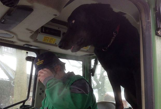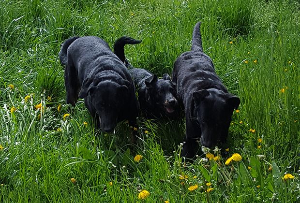 Die beiden Hofhunde Blacky und Sira beschützen das Milchgeschirr.