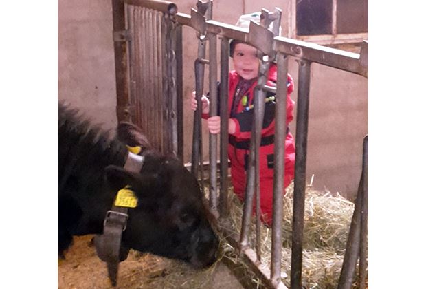 David und Pascal verwöhnen das Kälbchen Bianca.