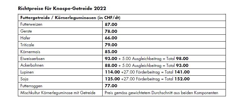 Wie beim konventionellen Futtergetreide steigen auch im Biosektor die Preise. Beim Getreide wurden die Richtpreise zwischen zwei und vier Franken erhöht. Eine massive Anhebung von 15 Franken je 100 Kilo wurde bei den Eiweisspflanzen vorgenommen.