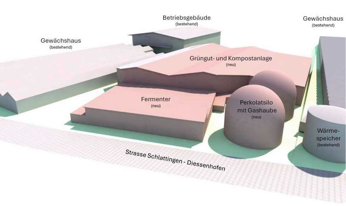Die Familie Grob plane darum seit mehreren Jahren den Bau einer Anlage zur Verwertung von Biomasse in unmittelbarer Nähe ihrer Gewächshäuser. Rund ¾ der in der geplanten Anlage verwendeten Abfälle sollen direkt aus dem anliegenden Verarbeitungsgebäude des eigenen Betriebs stammen. Das Projekt wurde in den letzten Jahren weiterentwickelt und konkretisiert. Nun liegen die Pläne für die Anlage seit dem 28. Juni öffentlich auf.