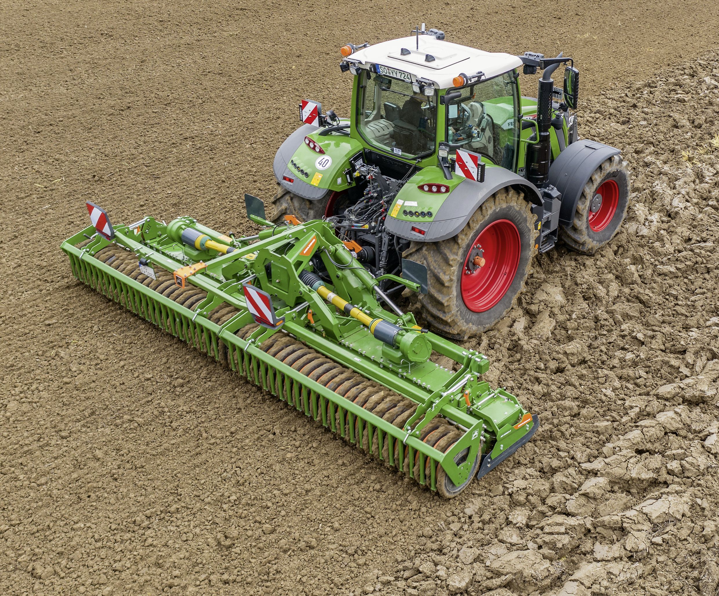 Die «KE 6002-2-400» bist vor allem für grosse Flächenleistungen entwickelt worden. Dank der Arbeitsbreite von 6 Meter ist die Kreiselegge sehr schlagkräftig. Die schnelle Klappung auf die Transportbreite von 3 Meter sorgt zudem für einen schnellen und sicheren Transport zwischen den Schlägen, schreibt Amazone. Sie ist für den Soloeinsatz ausgelegt und kann nicht mit einer Säschiene gekuppelt werden.