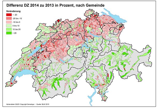Zahlen des BLW selber zeigen, dass rund zwei Drittel der Betriebe weniger Direktzahlungen als vor der Reform erhalten haben. Lehmann räumt denn auch ein, dass viele Betriebe im Mittelland 2014 weniger Direktzahlungen bekommen hätten. Die Direktzahlungen würden im Schnitt aber ohnehin nur ein Viertel der landwirtschaftlichen Einnahmen ausmachen: «Wir wollen damit die Direktzahlungen etwas relativieren. Die Märkte sind wichtiger.»