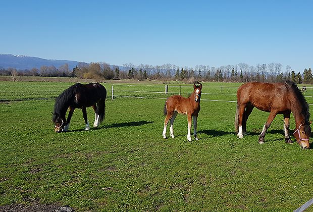 Übermütig bockend wird der Winter aus den Knochen geschüttelt. Und im gestreckten Galopp geht es quer über die Weidefläche. Nach dem grossen Austoben wird zum ersten Mal seit Langem ins zarte, süsse Frühlingsgras gebissen.