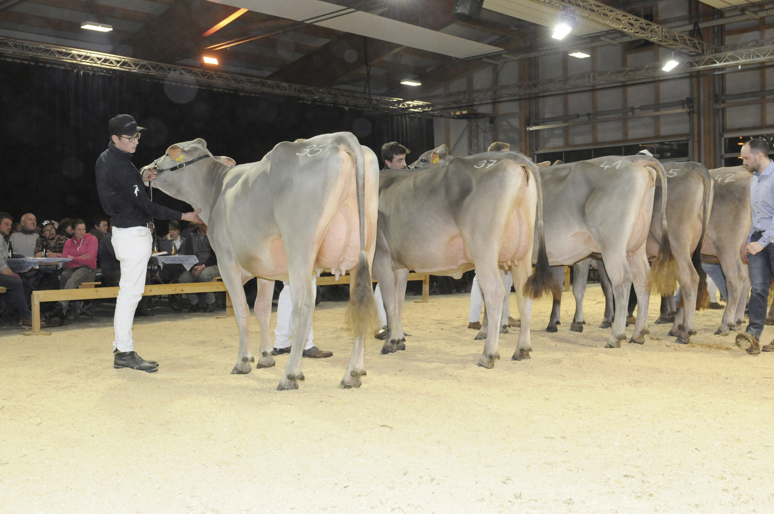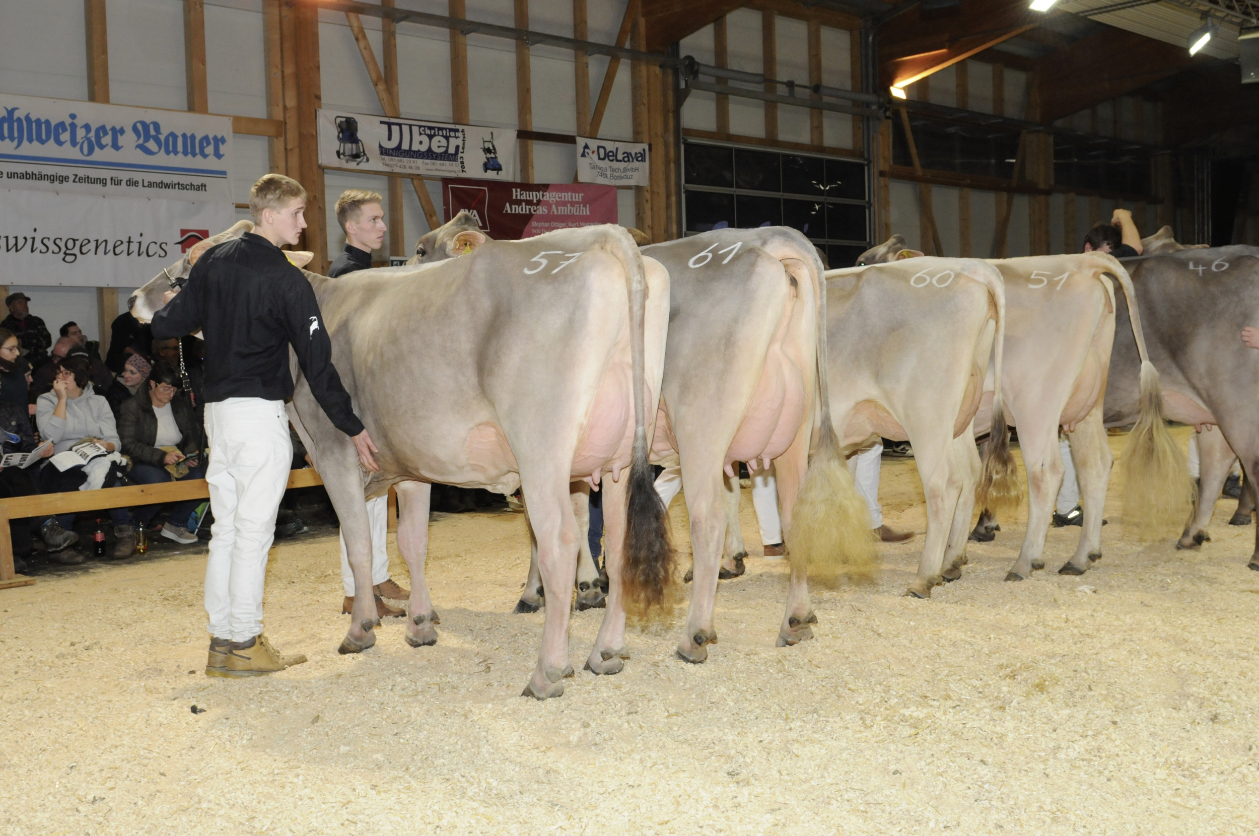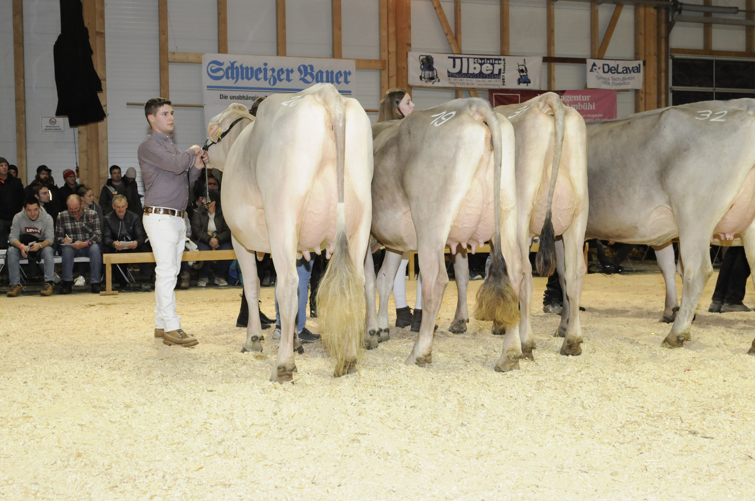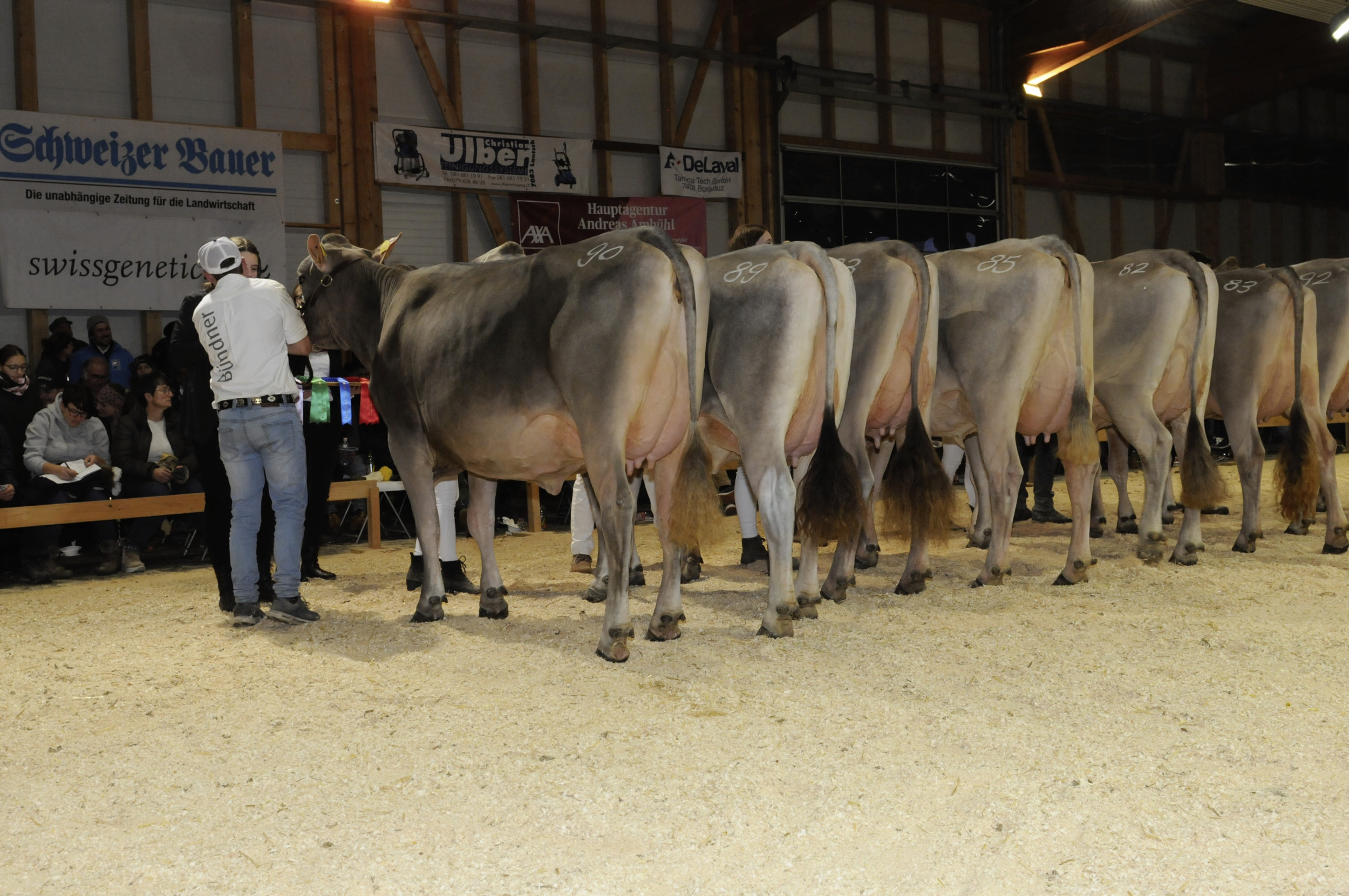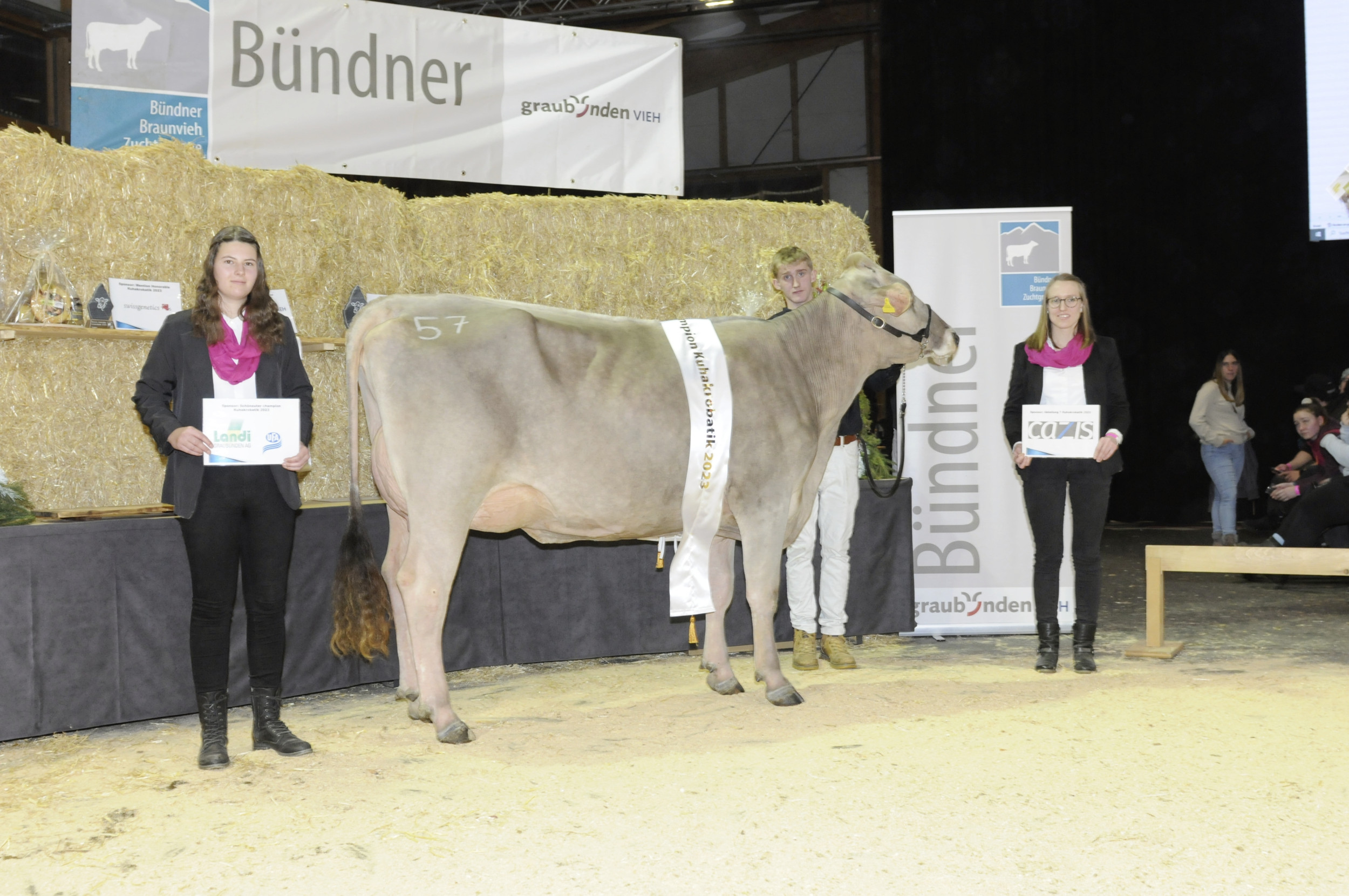 Die Kuhakrobatik in Cazis hat sich zu einem herausragenden Viehzuchtevent entwickelt. In diesem Jahr organisierte die Bündner Braunviehzuchtgruppe bereits die 22. Ausgabe. Richter Philipp Dahinden aus Ebnet LU lobte die sehr ausgeglichene Qualität. Dahinden sprach kurz nach der Schau von sehr produktiven und funktionellen Jungkühen. In 7 Abteilungen präsentierten die Bündner gut 70 Erstmelkkühe. Im Schöneuterwettbewerb konnte Hanspeter Berry aus Grüsch jubeln. Seine Berry’s Blooming Jamaika gewann den Eutertitel vor O Malley Tara aus dem Stall von Patric Capaul aus Lumbrein.