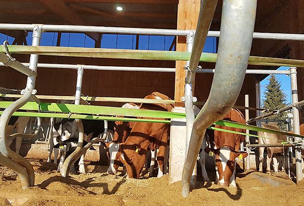 Grosse Kühe hingegen haben häufig Schwierigkeiten, sich abzulegen. Sie bleiben lieber stehen. Während in Altgebäuden flexible Liegeboxen eine Lösung sein können, um mehr Platz zu schaffen, kostet eine Verbesserung in neueren Ställen eher Arbeit als Geld: das Nackenrohr zurücksetzen, evtl. erhöhen oder durch ein Spannset ersetzen.