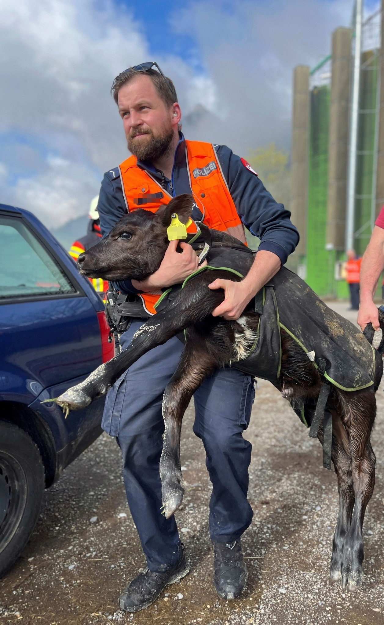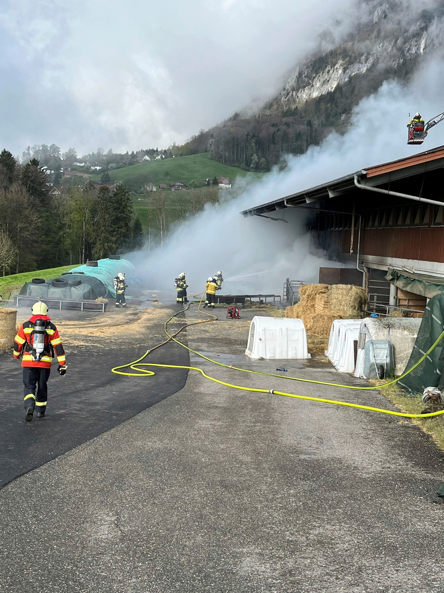 Die Feuerwehr musste sich auch um die Rettung der Tiere kümmern. Rund 90 Tiere, hauptsächlich Kühe und Kälber, die sich bei Brandausbruch im Stall befanden, konnten zusammen mit dem Landwirt unversehrt aus dem Stall getrieben werden. Sie wurden in eine Weide gebracht. Zwei Mutterkühe zogen sich aber so starke Verletzungen zu, dass eingeschläfert werden mussten.