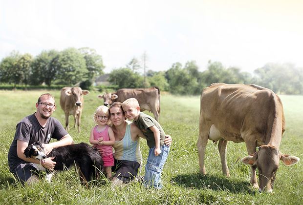 Familie Moosbrugger, Tirol (Österreich): «Wir helfen unseren Eltern mit ihren Kühen im Sommer auf der Alm. Wir kennen alle unsere Kühe seit ihrer Geburt und dadurch besteht eine enge Beziehung zu unseren Tieren. Im Bewusstsein, dass wir jeden Tag die Milch, die Butter und den Käse unserer Brown Swiss Kühe geniessen, macht uns sehr stolz auf unseren Betrieb. Brown Swiss - unsere erste Wahl.»