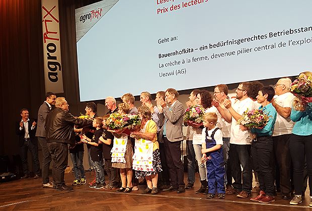 17.00 Uhr: Nun wird der Leserpreis von "Schweizer Bauer" und "Terre&Nature" vergeben. Der mit 3000 Franken dotierte Preis geht in den Kanton Aargau. Die Familie Schmid mit der Bauernhofkita gewinnt. Hier gehts zum Bericht