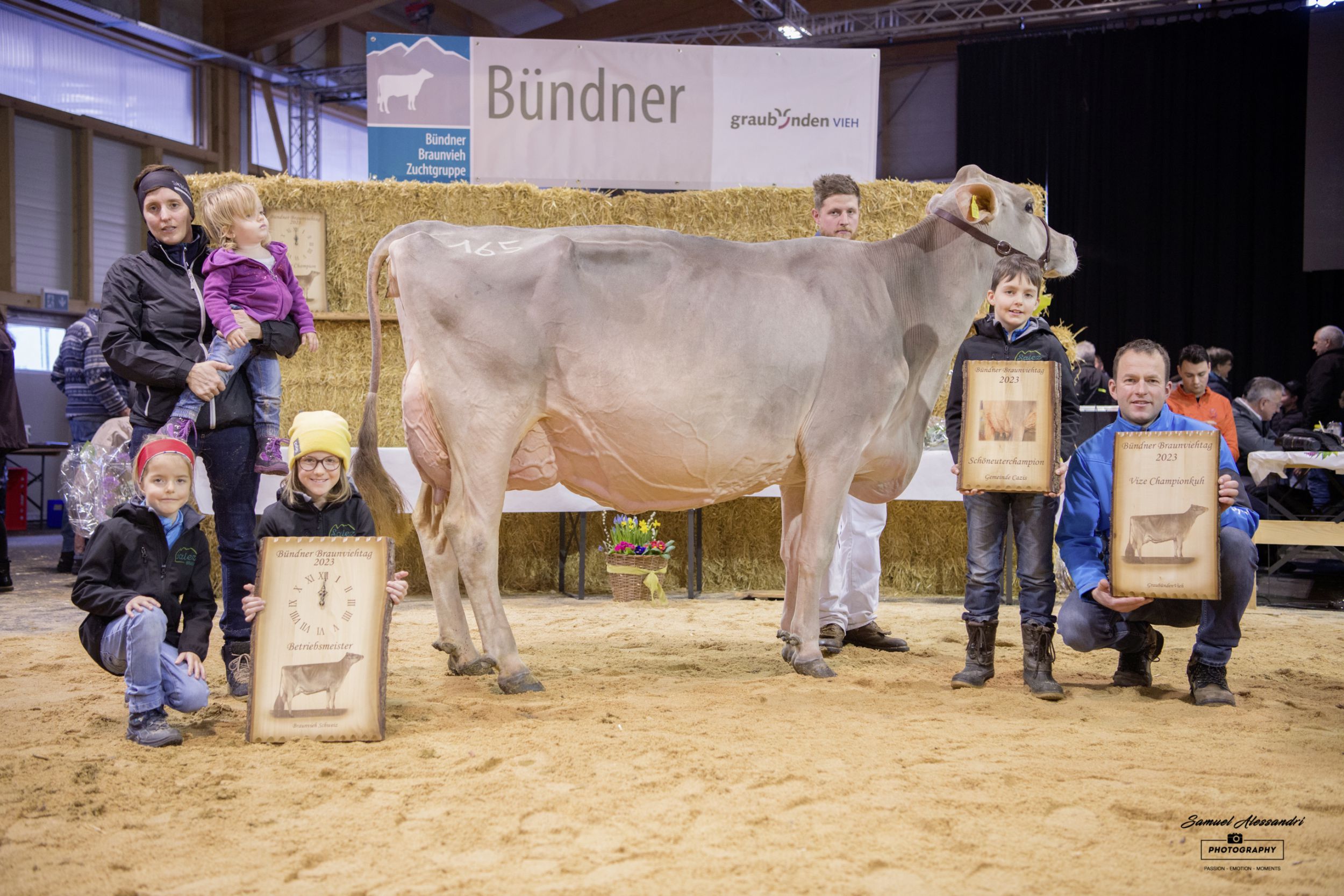 Champion wurde Walser’s Phil Rubina von Andreas Walser aus Haldenstein, vor der Eutersiegerin Salomon Sarina von Guido Bucheli aus Segnas und Luppi’s Blooming Bolivia. Den Championtitel bei den jungen Kühen holte sich Salomon Udine von Armin Buchli aus Rothenbrunnen vor der Schöneuter-Siegerin Cabalzar Swizzero Berna von Renzo Blumenthal aus Vella.