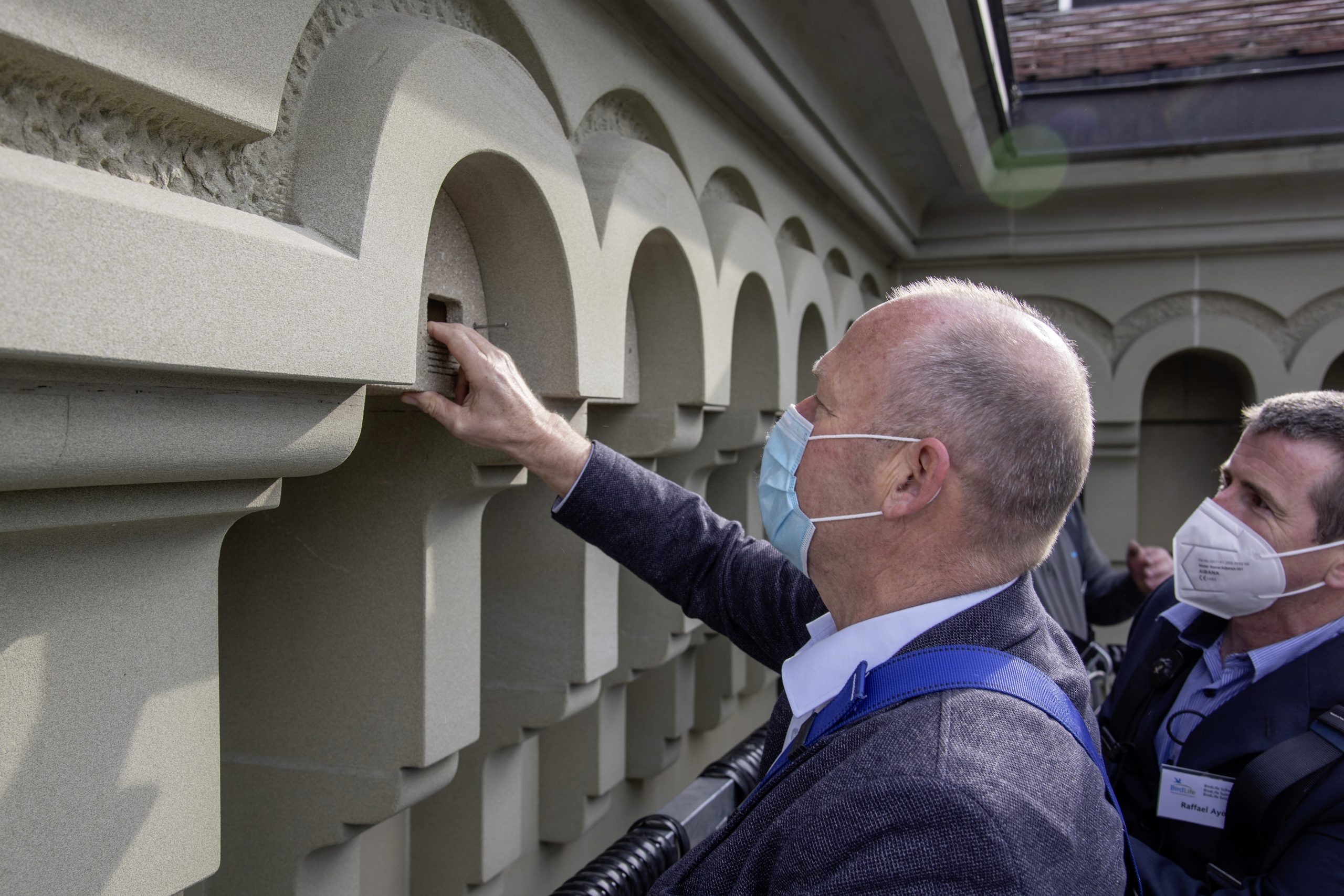 Zur Unterstützung der in der Schweiz potenziell gefährdeten Alpen- und Mauersegler sind am Montag am Bundeshaus in Bern Vogel-Nistkästen montiert worden. Lanciert hatte die Idee Nationalratspräsident und Landwirt Andreas Aebi (SVP/BE).