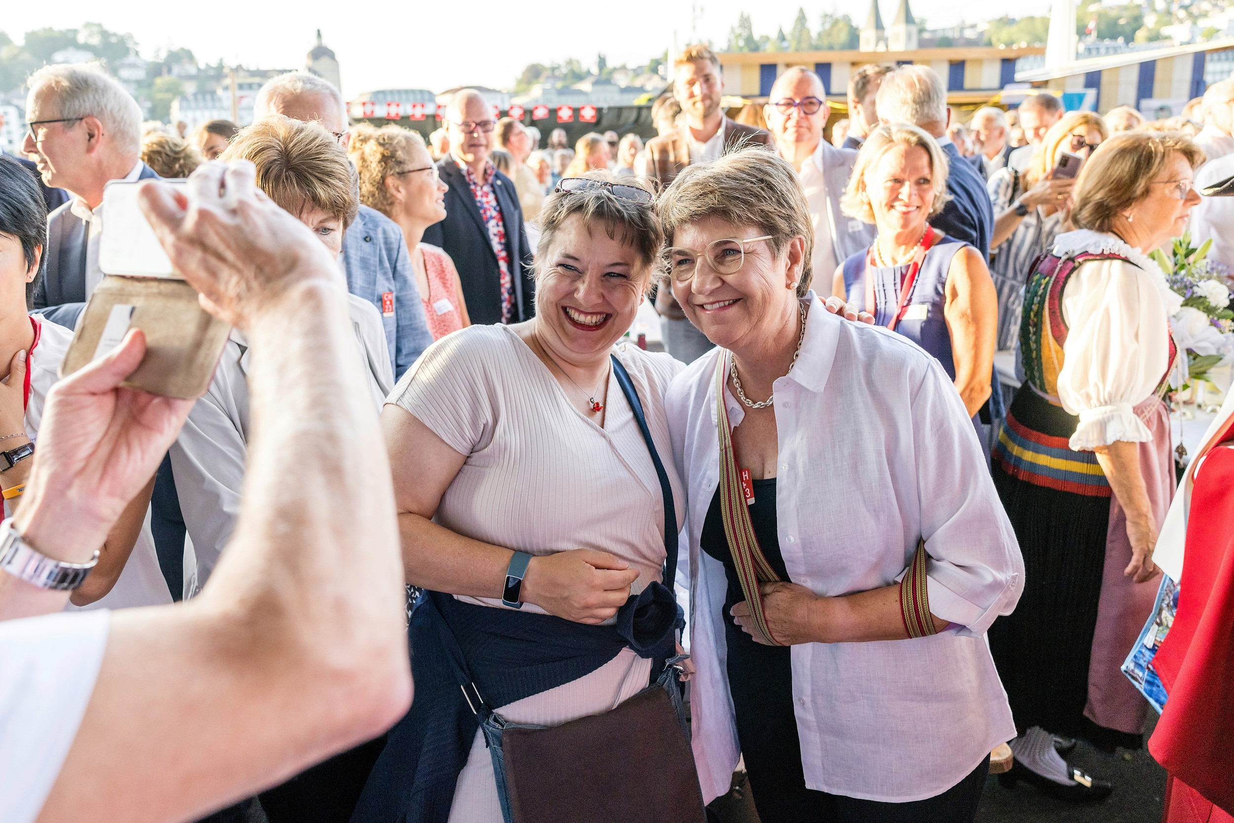 «Wenn die Schweiz eine Medaille namens Helvetia wäre, stünde auf einer Seite die Zahl 1 für die erste Demokratie Europas inmitten von Monarchien, die andere Seite würde eine schier unglaubliche Kontinuität symbolisieren», sagte die Verteidigungsministerin auf dem Europaplatz vor dem KKL.