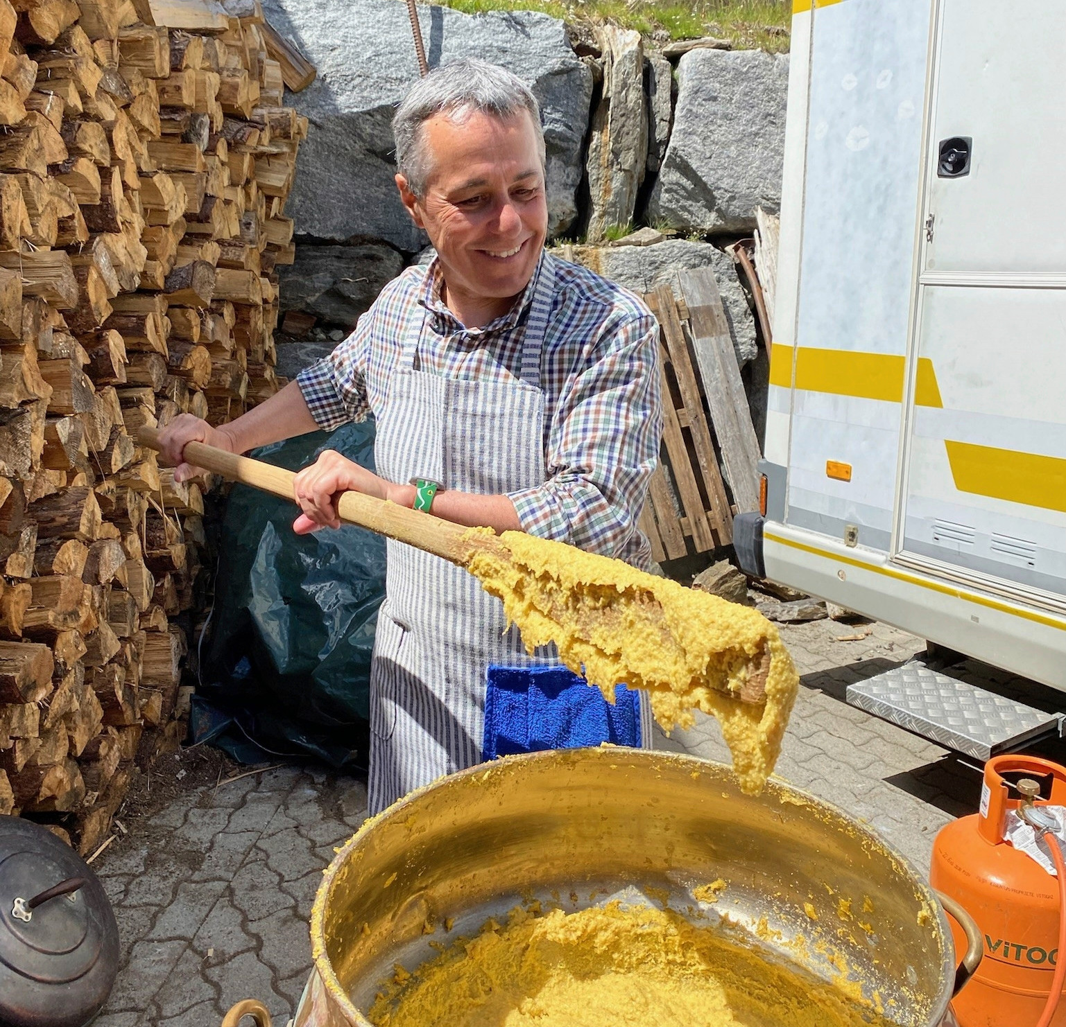 Bundesrat Ignazio Cassis bereitete auf der Alp Sorescia eine Polenta zu.