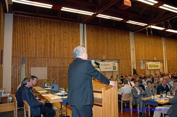 Bundesrat Ueli Maurer forderte an der Delegiertenversammlung des Zürcher Bauernverbandes in Winterthur ZH eine Wertediskussion in der Landwirtschaft. Die Bevölkerung kenne nur noch den Preis, nicht aber den Wert der Lebensmittel. Bilder: Simon Marti und Samuel Krähenbühl.