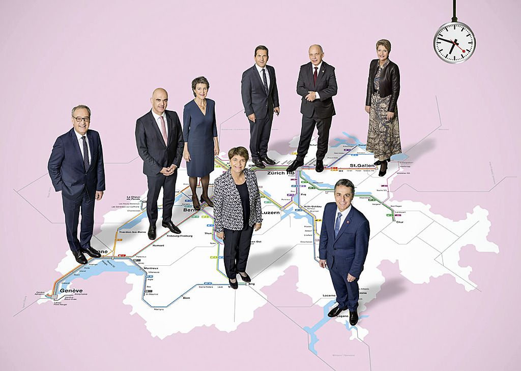 Grosse Uneinigkeit zeigt die Umfrage bei der gewünschten parteipolitischen Zusammensetzung des Bundesrats. Die aktuelle Zusammensetzung (2 SVP, 2 FDP, 2 SP und 1 Mitte) wird demnach nur von 18 Prozent der Befragten unterstützt. Allerdings stiessen sämtliche anderen in der Umfrage vorgeschlagenen Zusammensetzungen auf noch geringere Werte.