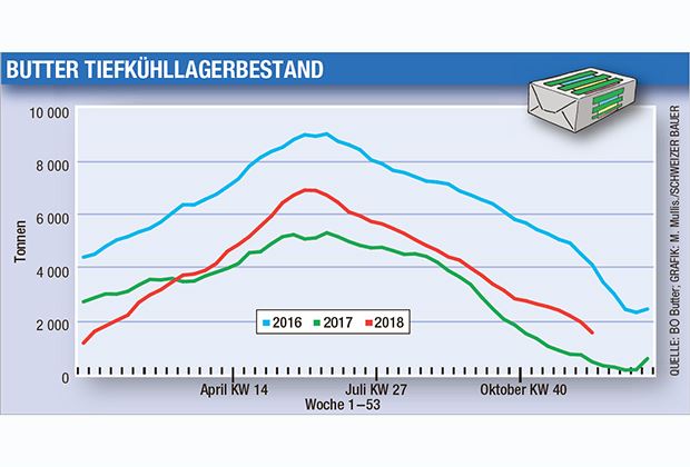 In der Vorweihnachtszeit wird viel Butter verarbeitet, auch zum Backen. Im Dezember ist der Lagerbestand am tiefsten.