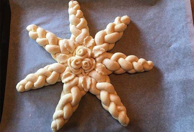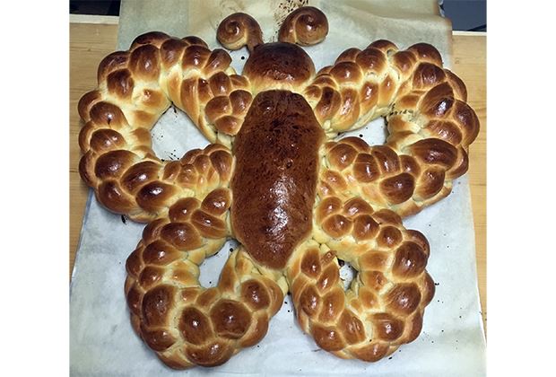 Für unseren Bildwettbewerb «Bild der Woche» waren wir in dieser Woche auf der Suche nach Buterzopf-Aufnahmen. Besonders zu erwähnen sind zwei wahre Meisterwerke, welche bei uns eingetroffen sind. Ein Stern aus Butterzöpfen mit eingemitteten Rosen von Beat Vogler aus Sachseln OW, seine Tochter Ramona hat diese Kreation gemacht. Und ein Butterzopf-Schmetterling von Florian Scheurer aus Kallnach BE. Beide Einsendungen wurden leider im Hoch- statt im Querformat eingereicht. Den Sieg erlangte die Aufnahme von Carmen Grünenwald aus Matten im Simmental: Ein «glustiger» Butterzopf vor dem Spillgertenmassiv.