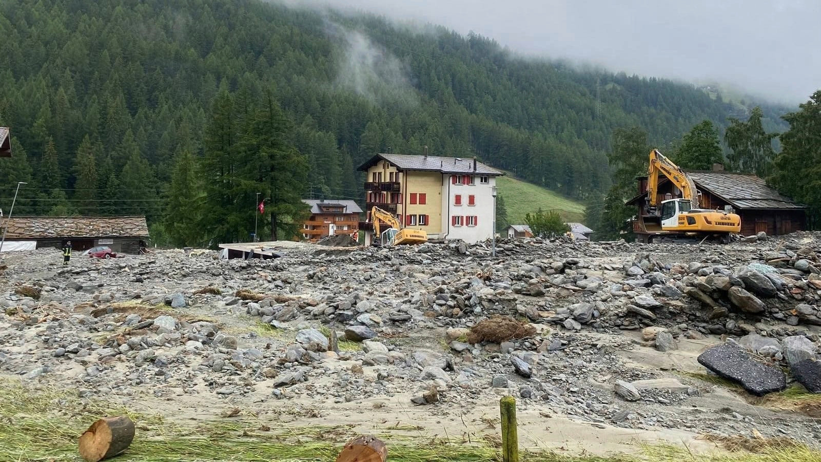 Der Triftbach schwoll innert weniger Minuten und brache Saas-Grund Verwüstung.