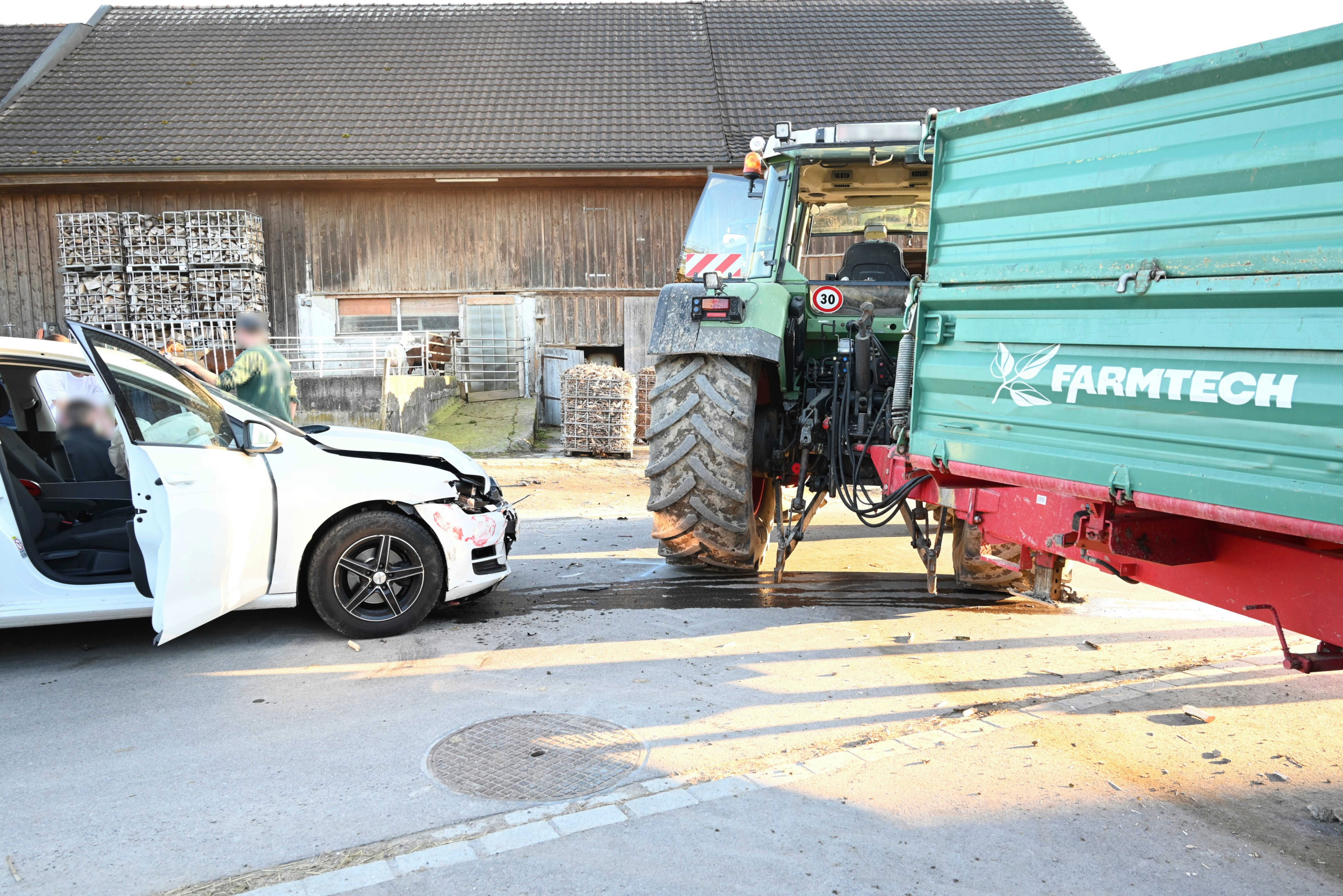 Es kam zu einer heftigen Kollision zwischen dem Auto und dem einbiegenden Traktor. Die 20-Jährige wurde durch den Aufprall verletzt. Sie wurde ins Spital gebracht. Der 36-jährige Traktorfahrer blieb unverletzt. Beim Crash entstand erheblicher Sachschaden. Er wird auf 20'000 Franken geschätzt.