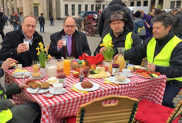 “Wir machen Dein Frühstück. Aber Dein Geld kommt nicht bei uns an“: So lautete das Motto des Aktionstages, der gestern vom Deutschen Bauernverband organisiert und durchgeführt wurde. Mit Frühstückstischen, Informationsangeboten oder Grillaktionen haben die Bauern in ganz Deutschland der Bevölkerung aufgezeigt, welchen Anteil der Lebensmittelpreise sie erhalten.