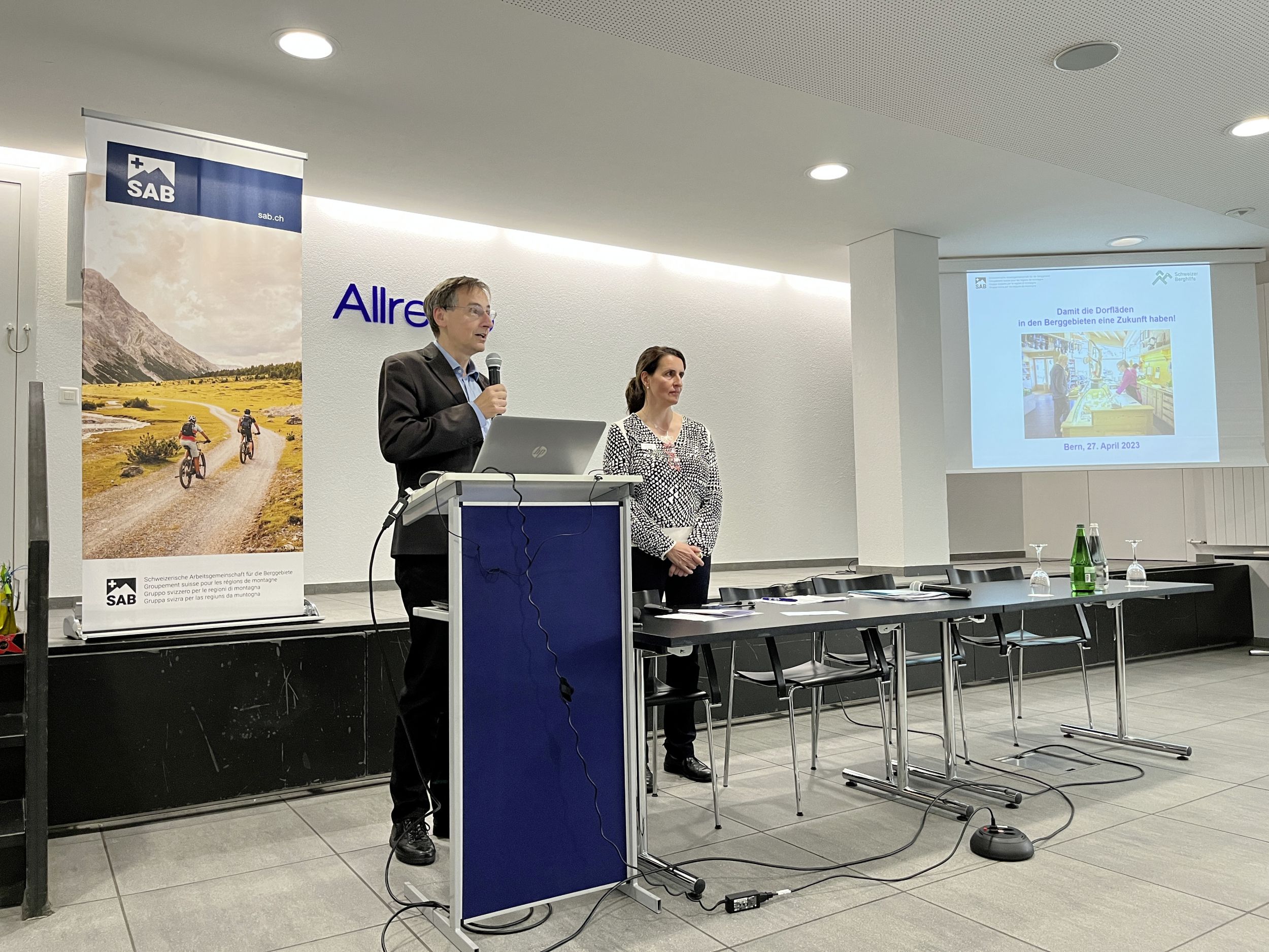 An der Tagung in Bern mit 80 Teilnehmerinnen und Teilnehmern zeigten die beiden Organisationen Lösungsmöglichkeiten auf. So können die Läden mit anderen Anbietern Synergien nutzen. Der Dorfladen von Spiringen UR verkauft nach diesem Modell auch Geschenkkörbe, Bergbahnjetons und Bewilligungen für die Strassenbenutzung.