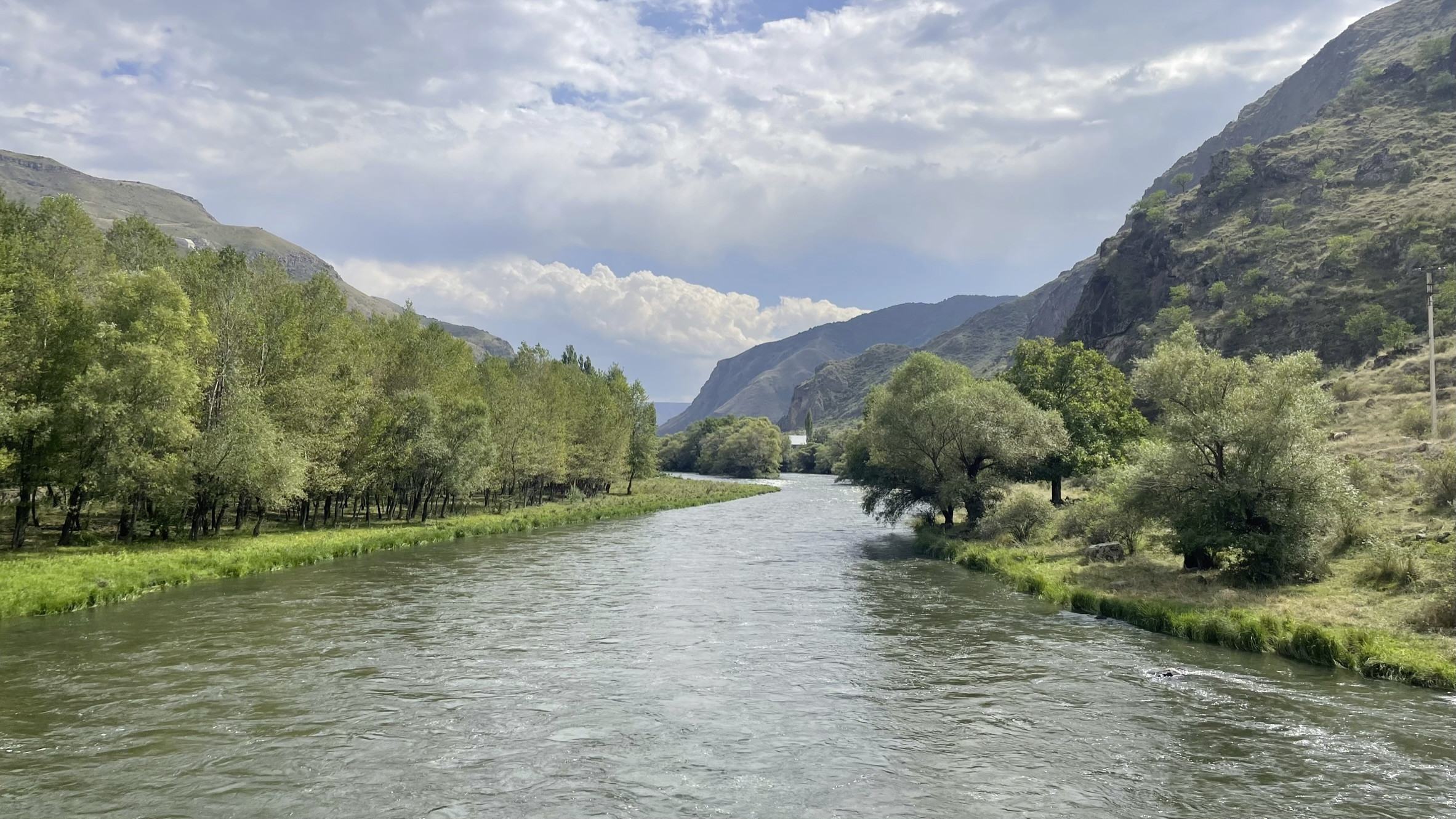Seit Jahrhunderten fliesst der Fluss Mrkvari (auch Kura genannt) friedlich durch Georgien, Türkei, und Aserbaidschan ins Kaspische Meer (1364 km). Bauernfamilien beginnen hier in Tirebi den Agrotourismus auszubauen.