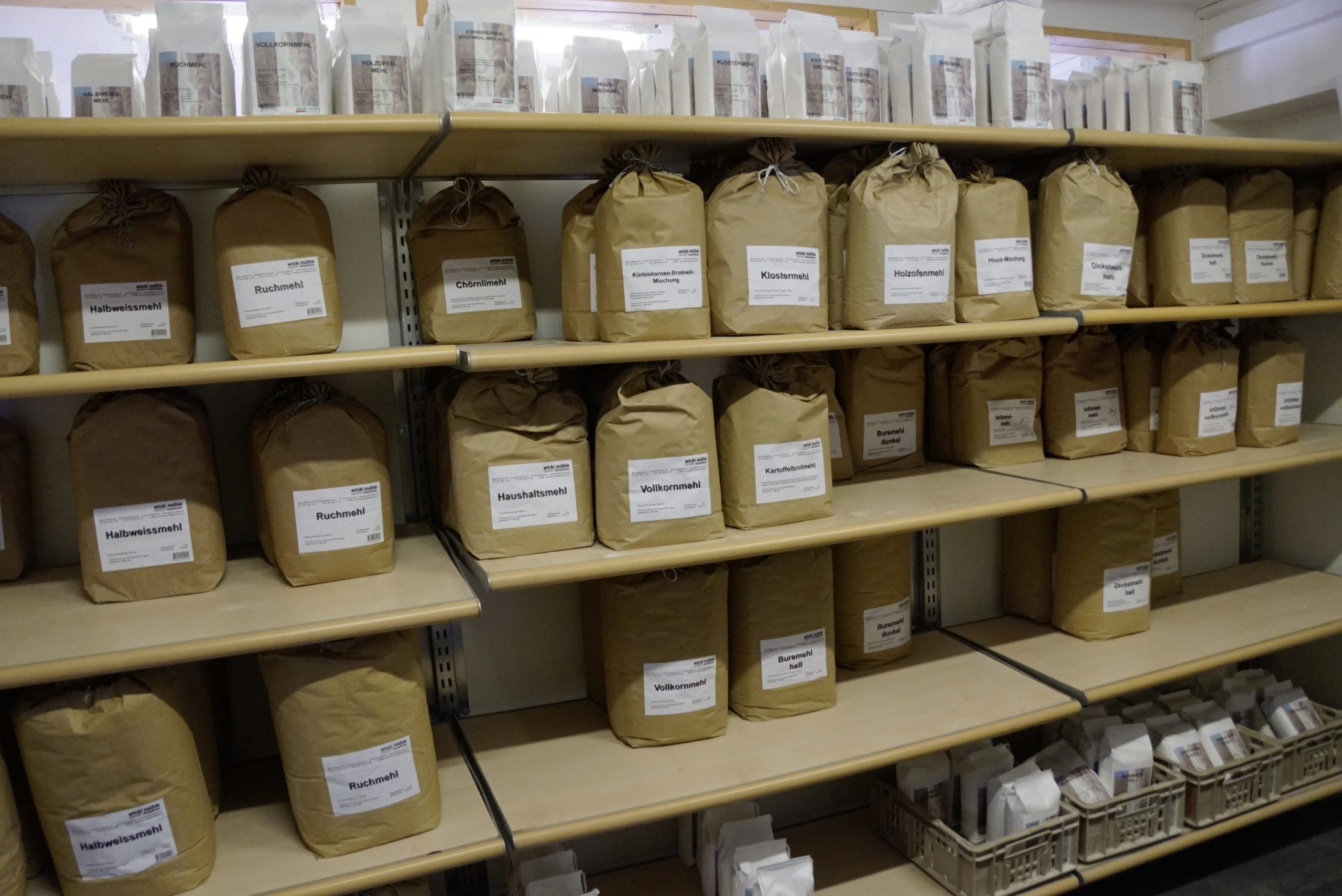 Sie mahlen oder schroten vor allem Weizen, Dinkel, Urdinkel und Roggen. «Einige Private kaufen Schrot, andere ganzes Getreide und mahlen es selbst», weiss die Müllerin. Geliefert werden die Mehle lose, gesackt à 500g, 1kg, 5, 10 und 25 kg. Ausgeliefert wird bis rund 40Kilometer rund um die Mühle. Abnehmerinnen sind Bäckereien, Gastrobetriebe, Private und auch einige Wiederverkäufer. Grosser Beliebtheit erfreut sich ihr Lädeli auf dem Betrieb. Kuchenmischungen oder Flaschenbrot etwa werden in Eigenproduktionen mit eigenen Rezepturen hergestellt. In die Vermarktung des Mehls investiert Guido Wicki einige Zeit, pflegt bewährte Beziehungen und versucht, neue Kundschaft zu gewinnen.