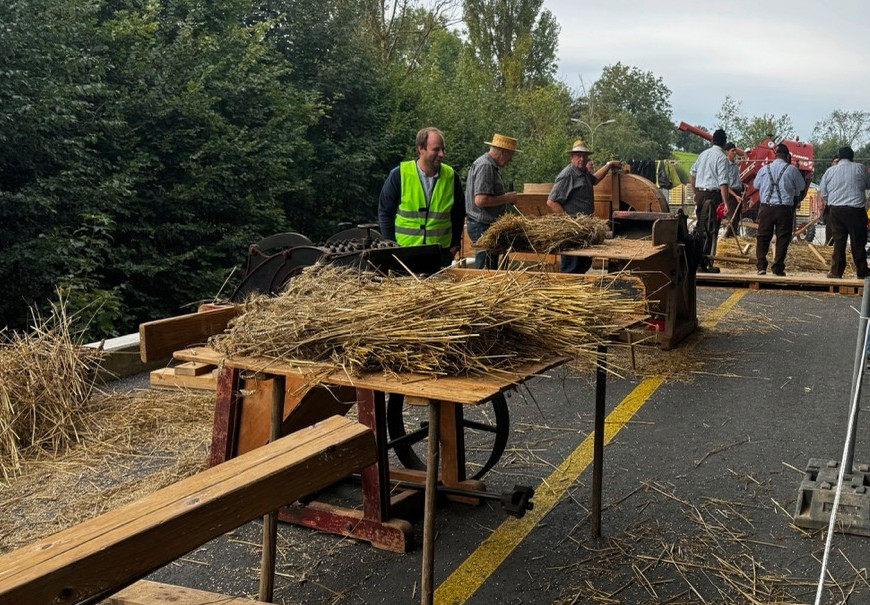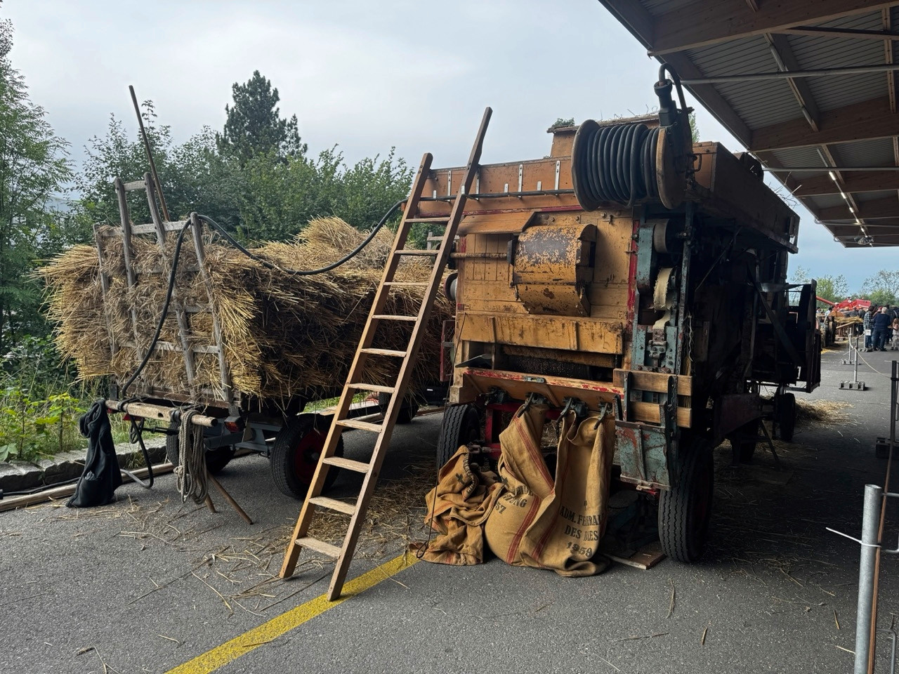 Vom traditionellen Flegeln über handbetriebene und motorisierte Dreschmaschinen bis hin zum Mähdrescher konnten Besucherinnen und Besucher sämtliche Etappen der Getreideverarbeitung live miterleben. Besonders eindrucksvoll war die Vorführung einer der letzten funktionstüchtigen Strohbandmaschinen der Schweiz, die eigens aus Belp hertransportiert wurde.