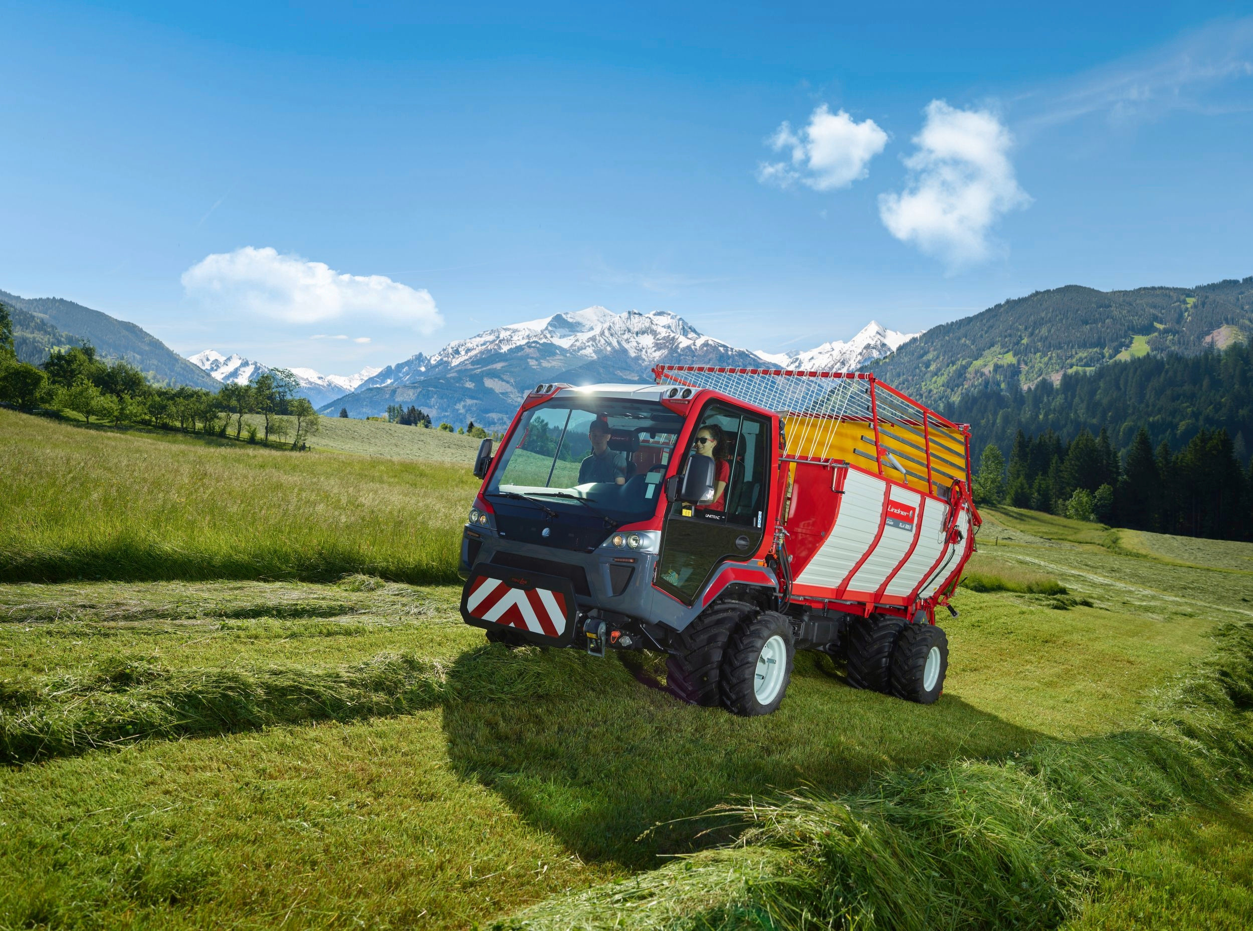Das hangtaugliche Modell schafft bis zu 60 Prozent Steigung im Dauereinsatz. Die mitlenkende Hinterachse garantiert gemäss Lindner überdurchschnittliche Wendigkeit und schont gleichzeitig den Boden.