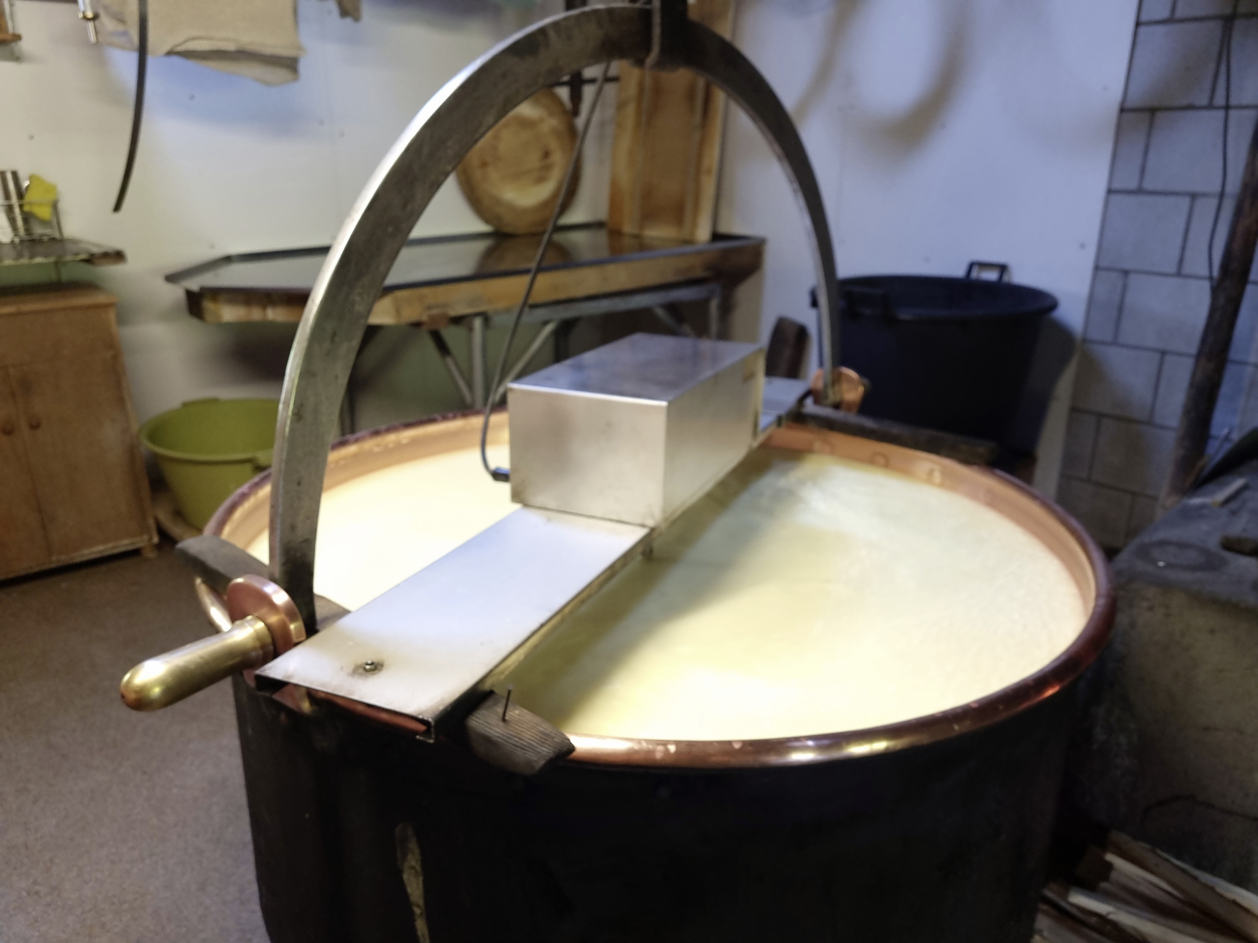 Nach über einer Woche auf der Alp lagern bereits etliche Käse im Keller. Denn jeden Tag fabrizieren wir fünf Berner Alpkäse AOP sowie Ziegenkäse. Den Kühen gefällt es hier oben auf den saftigen Alpweiden gut und entsprechend geben sie auch viel Milch. So viel, dass das Käse-Kessi aus allen Nähten platzt.