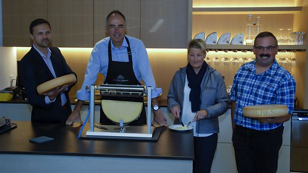 Nun aber wurde etwas ausserhalb des Dorfs eine neue und moderne Käserei samt robotergesteuertem Reifungslager sowie einem Verkaufsladen und einer Bar, wo man täglich von 6 Uhr morgens bis 22 Uhr abends Raclette essen kann. Im Obergeschoss befindet sich ein Eventlokal mit Platz für über 100 Personen, das die Gemeinde Orsières künftig für Empfänge nutzen will, sowie Ausstellungsräumen, in denen die Käseherstellung sowie die lokale Landwirtschaft auf ansprechende Weise erklärt wird. Mit einer interaktiven 360-Grad-Animation kann man in einen virtuellen Ringkuhkampf eintauchen. «Die Landwirtschaft hier ist innovativ», betont Präsident Benoît Tornay.