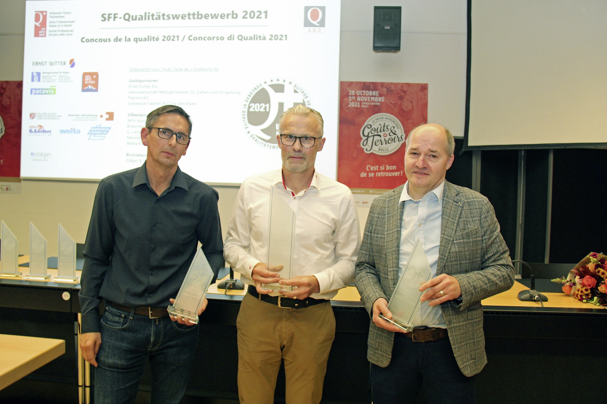 Sieger des Gesamtklassements des vom Schweizer Fleisch-Fachverband SFF und dem Ausbildungszentrum für die Schweizer Fleischwirtschaft ABZ durchgeführten Qualitätswettbewerbs für Fleischprodukte und –zubereitungen seien die beiden in Bazenheid und Gossau ansässigen St. Galler Betriebe Micarna AG (Gold) und Ernst Sutter AG (Silber) sowie die im aargauischen Döttingen beheimatete Metzgerei Köferli AG (Bronze).