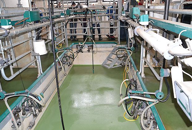 Beim Stalleingang befinden sich die Tiefstreuboxen für die Kälber und die Abkalbebox. Positiv bewertet Bachmann die Gummimatten auf der Fressachse und die Schieberentmistung. Auslauf haben seine 27 Kühe auf einer Fläche von 580m² auf der Jauchegrube mit Betonrosten mit einem direkten Zugang zum u-förmigen Tandemmelkstand. Laut BBZN-Lehrer und Bauberater Lukas Walthert sind die beidseitigen Heubühnen im Stall ideale Luftschichterzeuger. «Für mich als Einmannbetrieb hat sich diese Stalllösung als optimal erwiesen», so der Landwirt.